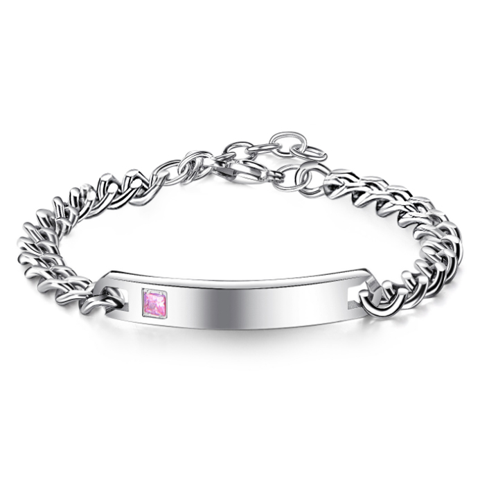 Schakel plaatarmband met roze steentje