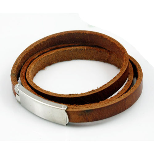Uw outfit maakt u compleet met deze stoere, lederen wikkelarmband van sieraadgraveren.nl. De armband is verkrijgbaar in de kleuren zwart-blauw en bruin.