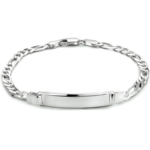 Deze 925 zilveren armband met figaro schakel en graveerplaatje heeft een lengte van 19 cm en een stevige karbaijn sluiting. Het graveerplaatje heeft een afgemting van 6x30 mm met een dikte van 1.2 mm. De schakelbreedte is 6.0 mm.