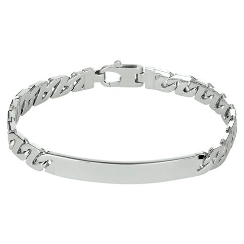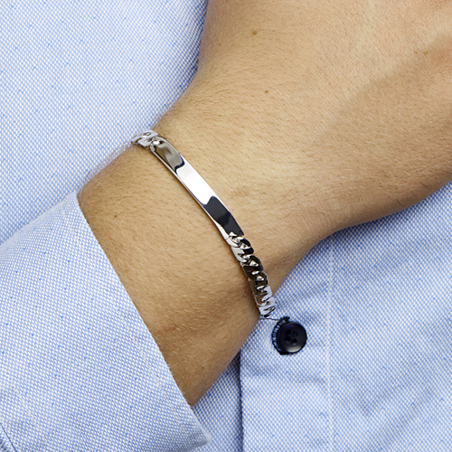 Prachtig gehornineerd zilveren heren sieraad met gourmette schakel en plaat waar een gepersonaliseerde tekst op gegraveerd kan worden. De graveerplaat heeft een breedte van 50mm, hoogte van 6.5 mm en een dikte van 2mm. Op de plaat kan een persoonlijke tekst (maximaal 25 tekens) gegraveerd worden. Optioneel kunt u ook de achterzijde laten graveren. De armband is verkrijgbaar in de lengtes 20 en 21 cm