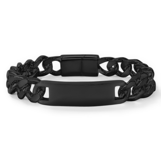 Prachtige RVS plaatarmband met brede schakels. De armband met plaat in zwart heeft een stoer voorkomen door de grootte van de schakels. De grootte van de plaat is 5.5 x 1.1 cm. De schakels hebben een breedte van 1,2 cm.