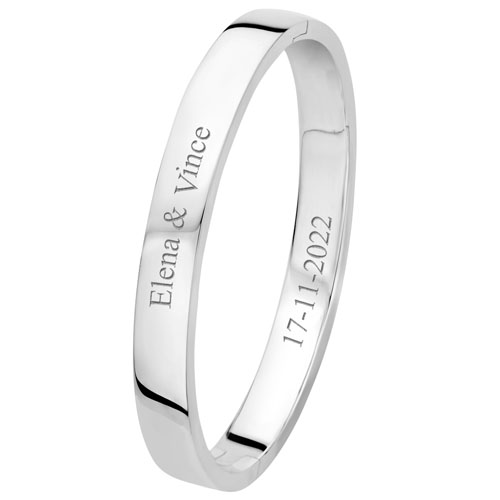 Deze prachtige massieven zilveren ovalen bangle van 8 mm breed is gemaakt van 925 Sterling zilver, en is met een gravure aan de binnen- en/of buitenzijde te personalisere . De armband wordt standaard aan de binnenzijde gegraveerd. Ook is het mogelijk om een vingerafdruk te laten graveren.