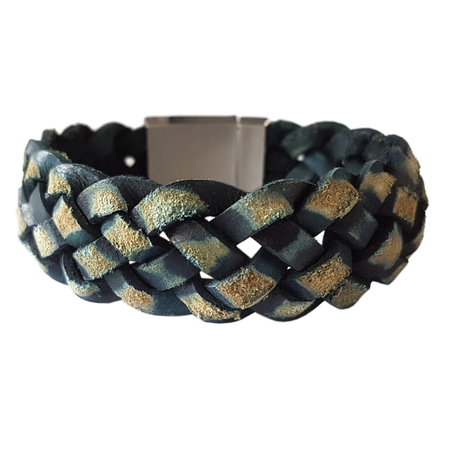 Gevlochten leren armband van het merk Taboo in de kleur Petrol. Deze Samuel armband heeft een stevige edelstalen sluiting van 2,5cm breed. De armband is verkrijgbaar in de lengtes 19 tot en met 23cm.