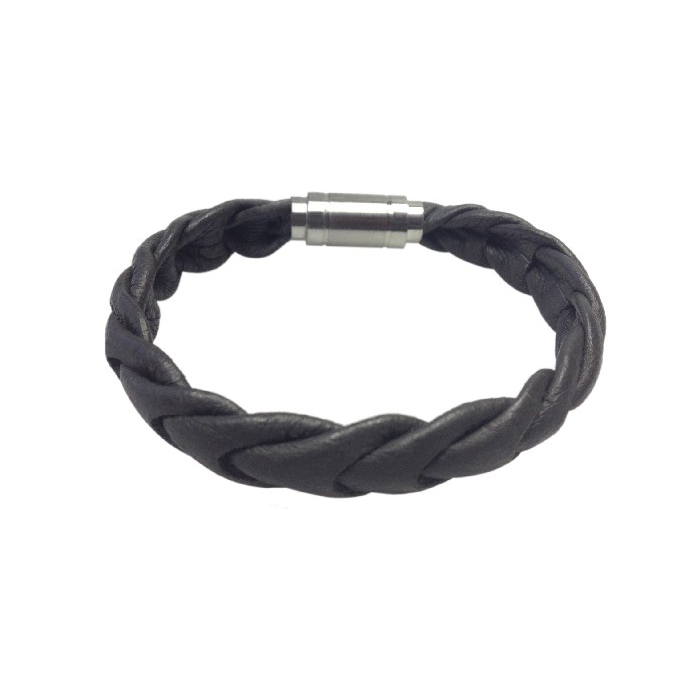 De armband is voorzien van een degelijke ronde RVS sluiting en heeft een gevlochten lederen slang van 1cm doorsnee. Het leer is gevlochten dop de ''punch'' techniek wat deze armband extra bijzonder maakt!