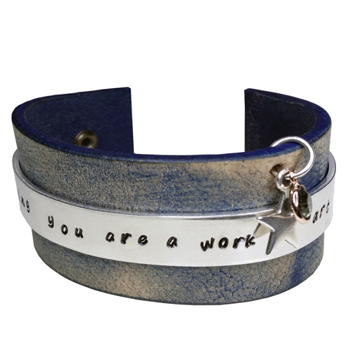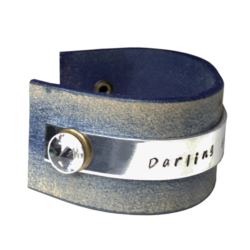 Stoere lederen Taboo armband van 3cm breed, met daar omheen een metalen strook waar een Quote of tekst in kan worden gestempeld. De band heeft ruimte voor een tekst van maximaal 30 tekens.