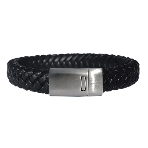 Gevlochten zwart leren Taboo armband model Ruben. De armband heeft een stevige edelstalen sluiting van 12mm breed en is verkrijgbaar in de lengte 17cm.