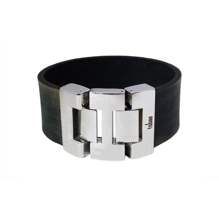 Stoere robuuste lleren armband van het merk Taboo. De armband is 3cm breed en is verkrijgbaar in de maten 19, 21 en 23 cm.