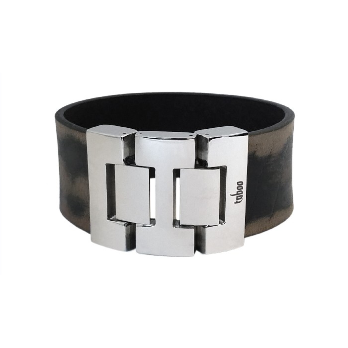 Robuuste zwart leren armband van het merk Taboo. Deze stoere armband is 3cm breed en is verkrijgbaar in de maten 19 en 21cm.