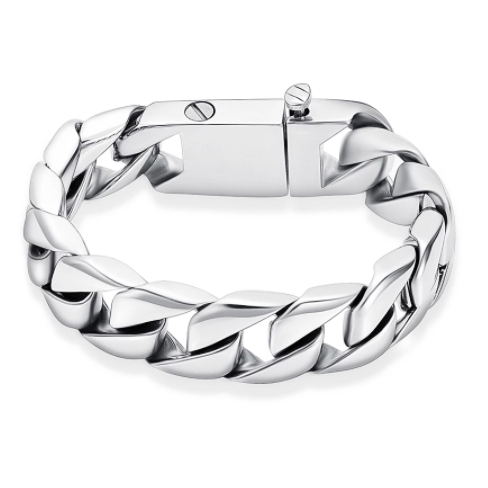 Stoere asarmband van hoogglans RVS. Door zijn gelinkte schakels van 14mm breed heeft deze armband een stoere en opvallende look. In de sluiting is een askamer verwerkt welke via een subtiel schroefdopje gevuld kan worden. Zo draagt u de herinnering aan een dierbare op onopvallende wijze toch altijd bij u. Door het robuuste ontwerp van de RVS asarmband is dit sieraad zowel door heren als door stoere dames te dragen.