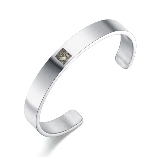 Gedenken op uw manier. Dat kan met deze modern vormgegeven asarmband van RVS in een glanzende of matte afwerking. Het design van de armband is helemaal van deze tijd en past bij iedere outfit of gelegenheid. Hierdoor zal niemand vermoeden dat u eigenlijk de herinnering aan uw dierbare letterlijk bij u draagt. De RVS armband is voorzien van een open askamer waarin een beetje as van een overledene wordt geplaatst door de goudsmid. Binnen een werkdag na het plaatsen van de bestelling, ontvangt u per mail de instructies om een beetje as aan ons toe te sturen.
