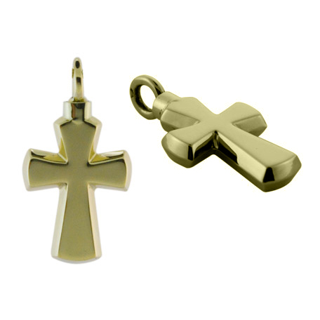 Ashanger van 14 karaats geelgoud in de vorm van een sierlijk kruis. De ashanger heeft het formaat 20x15x4mm en is inclusief het hangeroog 28mm lang.