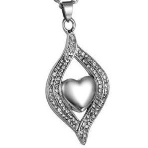 RVS ashanger druppelvormig met steentjes en hart met een schroefdopje aan de achterzijde.