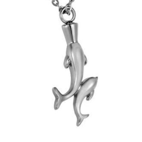 De RVS ashanger heeft de vorm van twee dolfijnen. De schroefdop van de ashanger bevindt zich aan de bovenzijde.