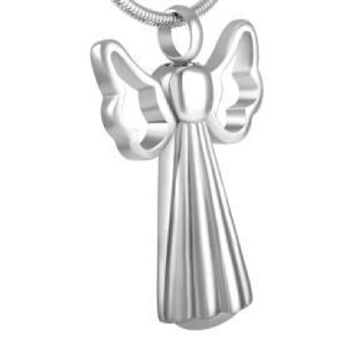 RVS ashanger engel met opengewerkte vleugels waarbij de schroefdop aan de bovenzijde zit.