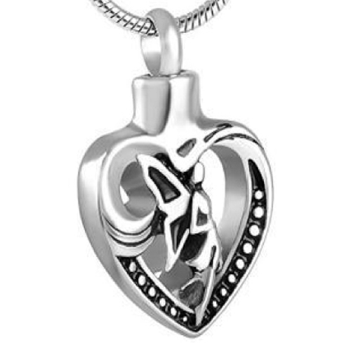 RVS ashanger hart met in het midden een fee. De hanger heeft de schroefdop aan de bovenzijde.