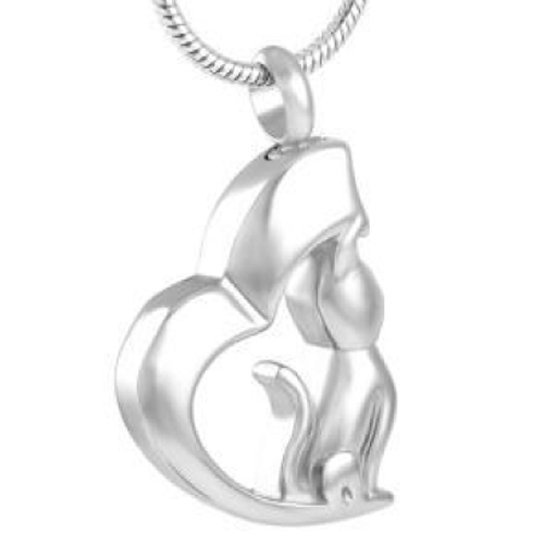 RVS ashanger half hart met poes, waarbij het schroefdopje aan de bovenzijde zit.