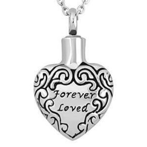 RVS ashanger hart met een schroefdopje aan de bovenzijde. De ashanger bevat de tekst 'forever loved'.