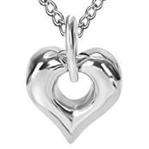 RVS ashanger hart met een open ronde, waarbij het schroefje aan de achterzijde zit.