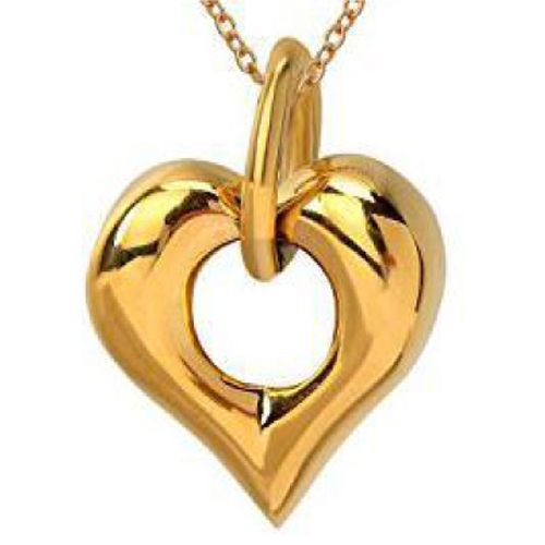 Goudkleurige RVS ashanger hart met een open ronde, waarbij het schroefje aan de achterzijde zit.