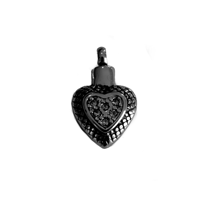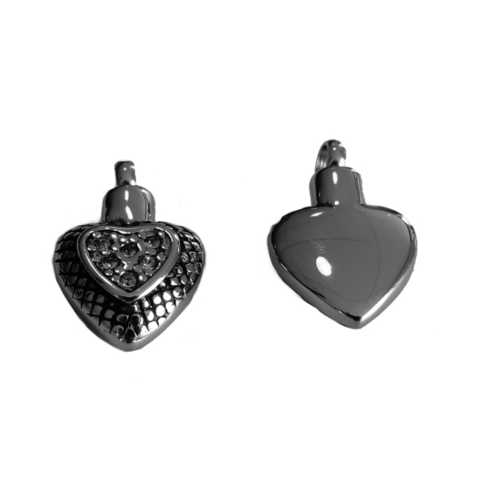 RVS ashanger hart met een schroefdopje aan de bovenzijde. De ashanger bevat 6 steentjes aan de voorzijde.