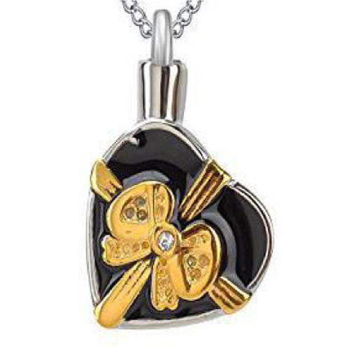 RVS ashanger hart zwart met goudkleurige strik en een schroefdopje aan de bovenzijde.