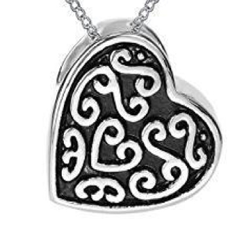 RVS ashanger hart zwart met vormen met een schroefdopje aan de zijkant. De ashanger bevat de tekst 'Always in my heart'.