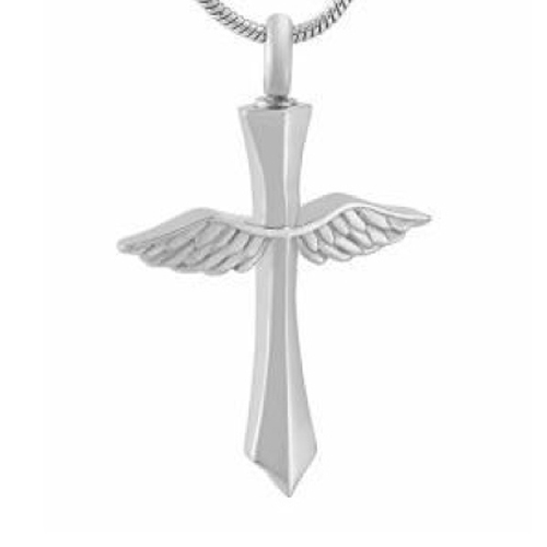 RVS ashanger kruis met engelenvleugels