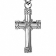 De RVS ashanger heeft de vorm van een kruis waarover touw is gebonden. De schroefdop van de ashanger bevindt zich aan de bovenzijde.