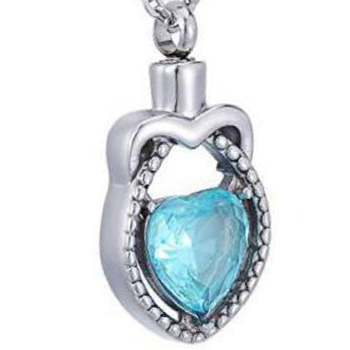 RVS ashanger met licht blauw steentje als hart waarbij de schroefdop aan de bovenzijde zit.