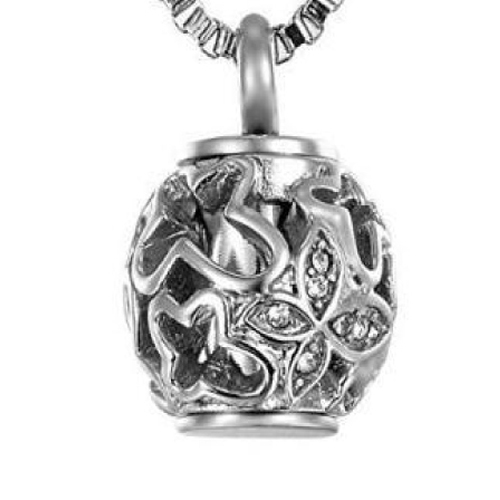 De RVS ashanger in de vorm van een open gewerkte bol, heeft in het midden een koker waar as ingeplaatst kan worden. De open gewerkte bol heeft figuren als vlinders, kruizen en bloemen met steentjes. Op de as koker staat de tekst "Always in my heart". Het is mogelijk om nog een aanvullende tekst op de koker te laten vullen, dit heeft een meerprijs van €5,00.