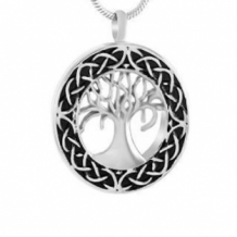Ronde RVS ashanger met aan de voorzijde een open gewerkte boom. De schroefdop van de ashanger bevindt zich aan de bovenzijde.