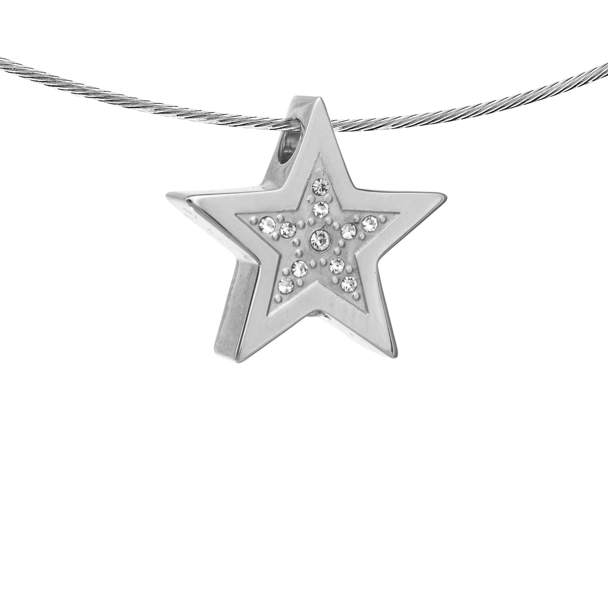 Een schitterend symbolisch sieraad: deze RVS ashanger in stervorm vormt een prachtige herinnering aan uw dierbare. In de hanger is plaats voor de as van een overledene waardoor u hem of haar altijd bij u draagt. De ashanger is gedetailleerd afgewerkt met elf zirkonia siersteentjes voor een luxe, maar elegante uitstraling. De sterhanger is 21,5 millimeter in doorsnede en kan geleverd worden in RVS metaalkleur of vergulde goudtint.
