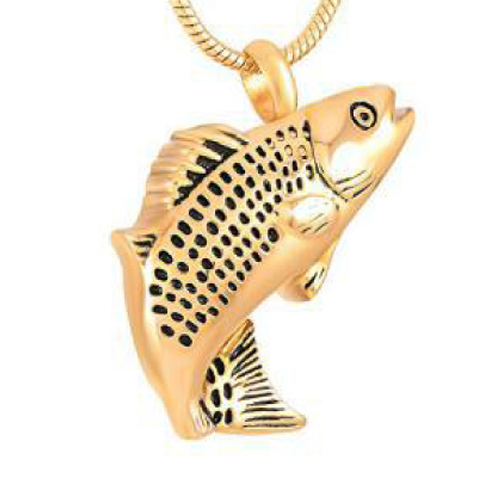 De goudkleurige RVS ashanger heeft de vorm van een vis. De schroefdop van de ashanger bevindt zich aan de bovenzijde.