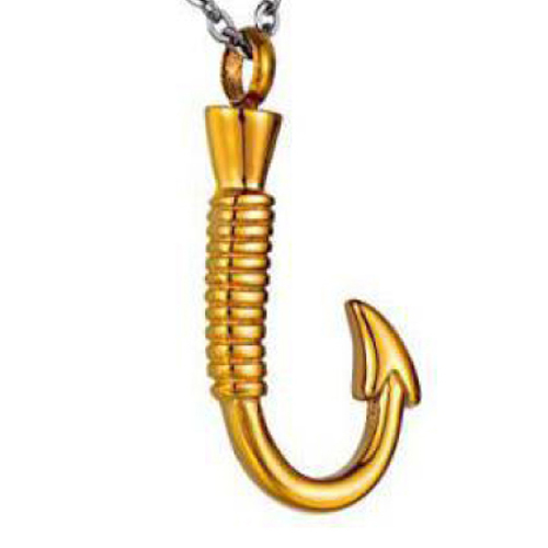 De goudkleurige RVS ashanger heeft de vorm van een vishaak. De schroefdop van de ashanger bevindt zich aan de bovenzijde.