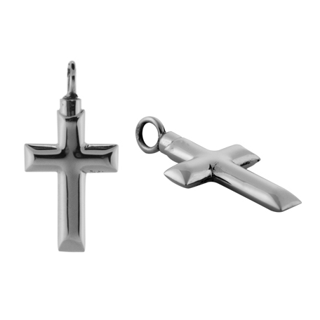 Ashanger van massief 925 zilver met een schroefdop in de vorm van een recht kruis. De ashanger is 20x13mm groot en 3mm dik. Inclusief het hangeroogje is de ashanger 27mm lang.