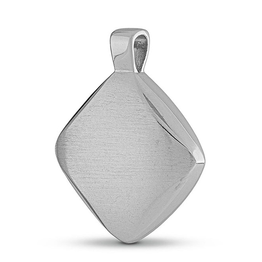Zilveren ashanger van 25mm in de vorm van een ruit. De ashanger is te vullen via een klein schroefdopje. De ashanger kan mat of glanzend worden afgewerkt. Optioneel kunt u de ashanger laten graveren met een persoonlijke tekst in een sierlijke schrijfletter of een standaard rechte letter.