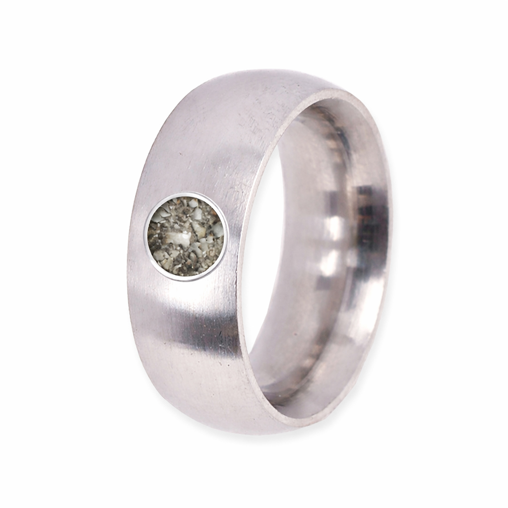 Deze bolle asring in zilver met een ronde open askamer is een echte eye-catcher. 1 werkdag na het plaatsen van uw bestelling ontvangt u per mail de instructies om een beetje as aan ons toe te sturen per aangetekende post.
