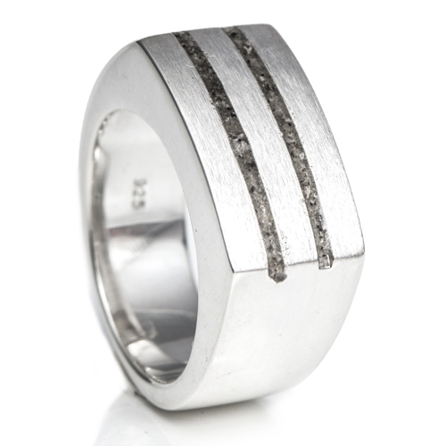 Een heel bijzonder sieraad voor een bijzondere herinnering. Deze zilveren zegelring is aan de bovenzijde voorzien van twee sleufjes waarin een beetje as van een overleden dierbare kan worden verwerkt. Hierdoor blijven de asdeeltjes op subtiele wijze zichtbaar, wat deze ring een unieke uitstraling geeft. Een perfect gedenksieraad dat door zowel dames als heren te dragen is.