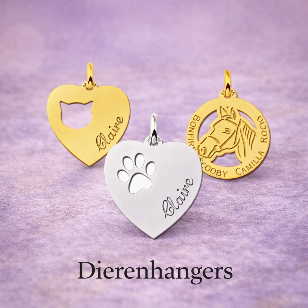 Ontdek onze uitgebreide collectie persoonlijke hangers, met zorg en vakmanschap gegraveerd in ons eigen atelier. Kies uit 925 zilveren hangers, gouden hangers (goldplated, 9k, 14k en 18k) of metalen hangers en laat jouw sieraad volledig op maat maken. Of je nu op zoek bent naar een subtiel sieraad met een diepe betekenis of een opvallende hanger als blijvende herinnering: bij ons vind je altijd een hanger die bij jou past.