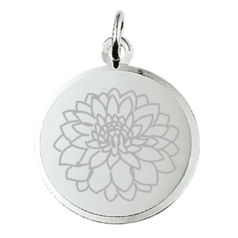 Zilveren bloemhanger met een Dahliabloem. De hanger is vervaardigd van hoogwaardig 925 sterling zilver en heeft aan de voorzijde een gravure van een Dahlia bloem en een schuine facetrand. Deze Dahlia bloem is een symbool van elegantie en is bovendien bekend van het wereldberoemde bloemencorso in onze vestigingsplaats Zundert. Dit maakt de hanger niet alleen een mode-accessoire, maar is ook een eerbetoon aan de prachtige corsowagen welke elk jaar gemaakt worden.