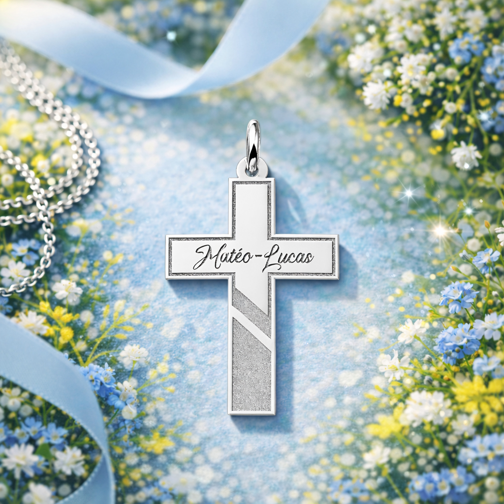 Gegraveerd zilveren kruis met naam – kinder communie ketting