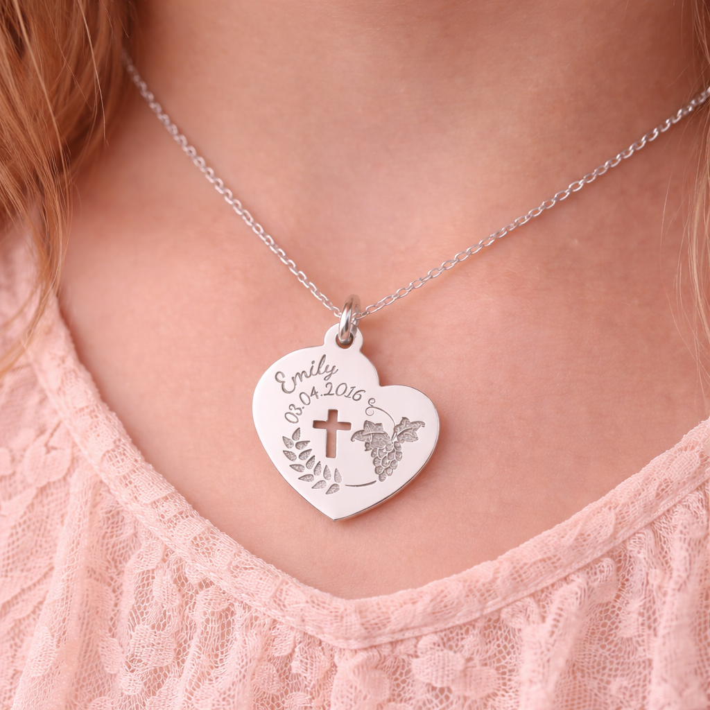 De zilveren communie hart hanger met naam en datum is een tijdloos sieraad dat niet alleen tijdens de communiedag gedragen kan worden, maar ook daarna als waardevolle herinnering aan deze bijzondere gebeurtenis.