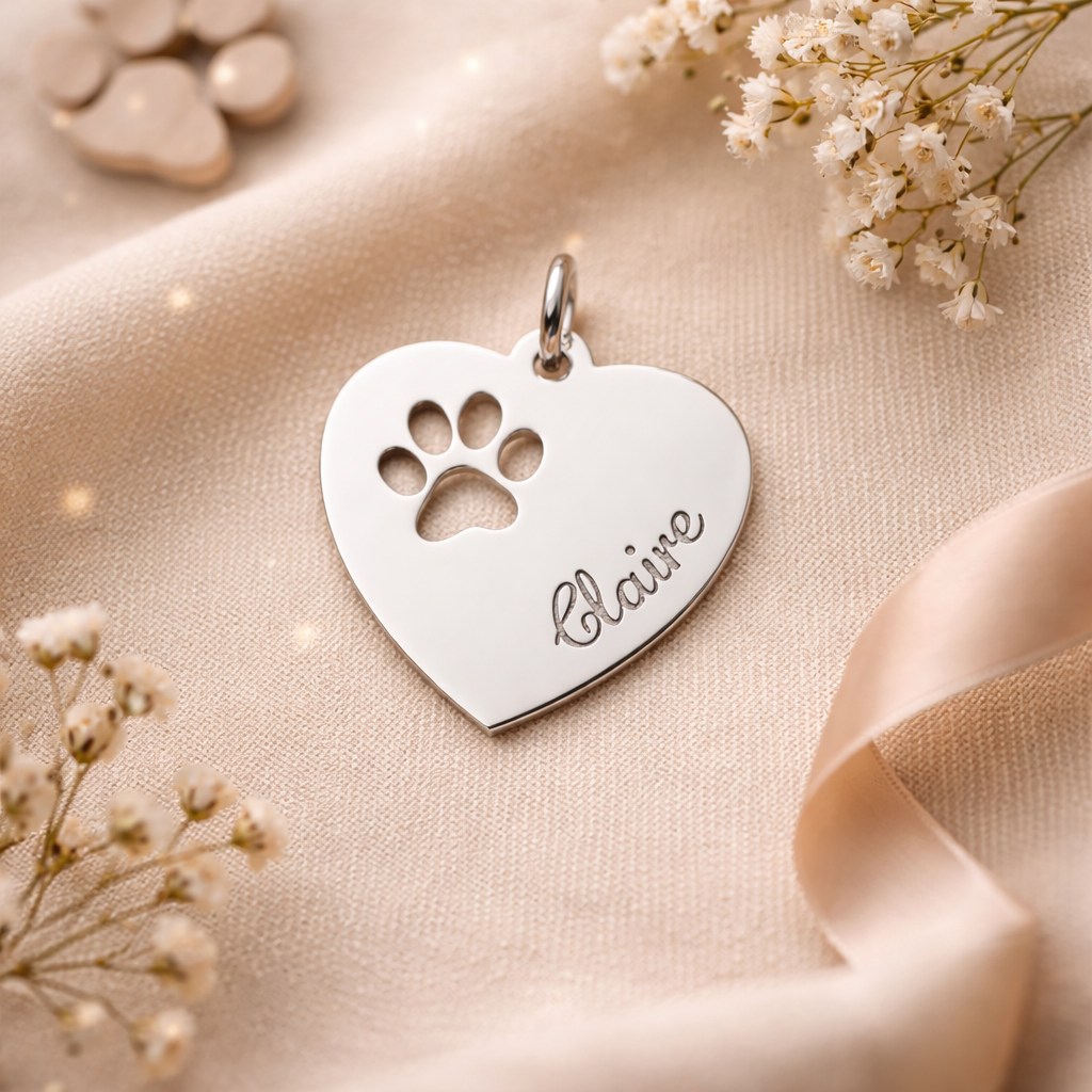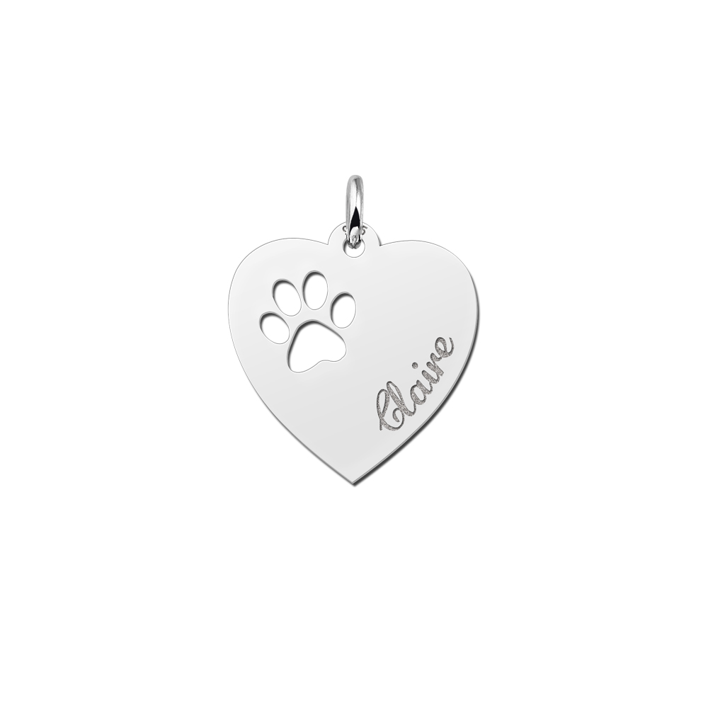 Zilveren hart hanger met pootje – persoonlijk gegraveerd