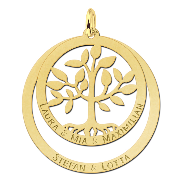 De familiehanger is 14-karaats goud.  Deze familiehanger met stamboom is ook te verkrijgen in zilver.