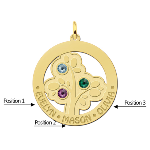 Gouden Stamboom met 3 geboortestenen Names4ever