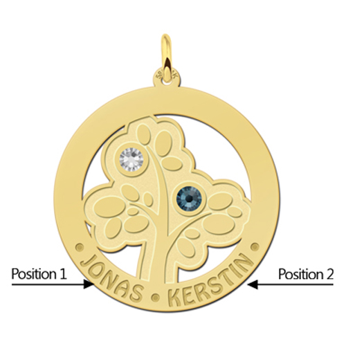 De familiehanger is gemaakt van 14 karaat goud en heeft swarovski kristallen in de kleur van de gekozen geboortesteen.