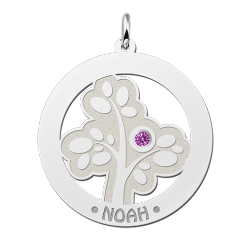 Deze zilveren stamboom met geboortesteen is een mooi accessoire om te laten zien hoe trots je bent wanneer je eerste kindje geboren is.