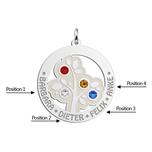 Zilveren Stamboom met vier geboortestenen Names4ever
