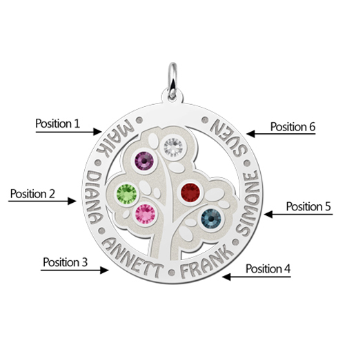 Zilveren Stamboom met zes geboortestenen Names4ever