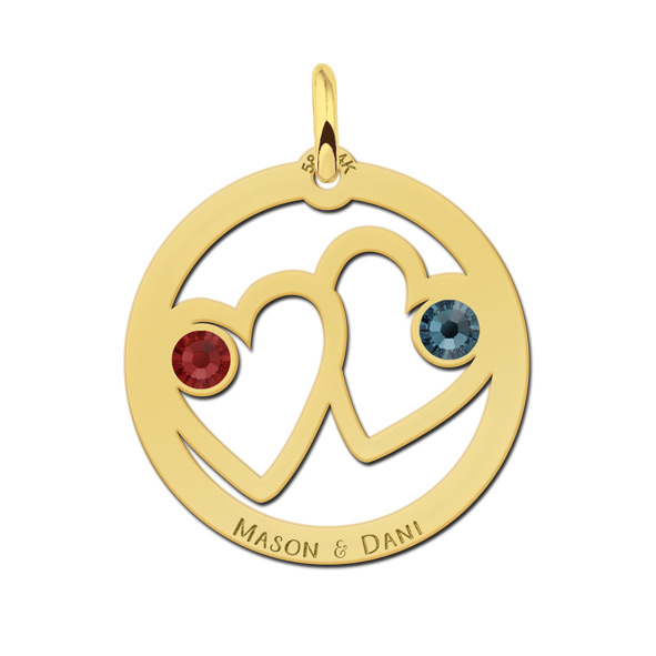 Deze prachtige familiehanger is gemaakt van 14 karaat goud en heeft twee geboortestenen.